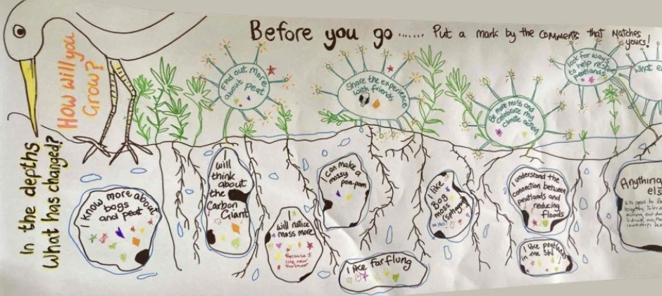 Back at the STERTS centre we found mossy carpet, a healthy and an unwell bog in containers to explore and bog moss activities still on, alongside a silent disco of RE-PEAT’s Moss Pit - an audio bog poetry. Another showing of The Mossy Story and more tea and cake.