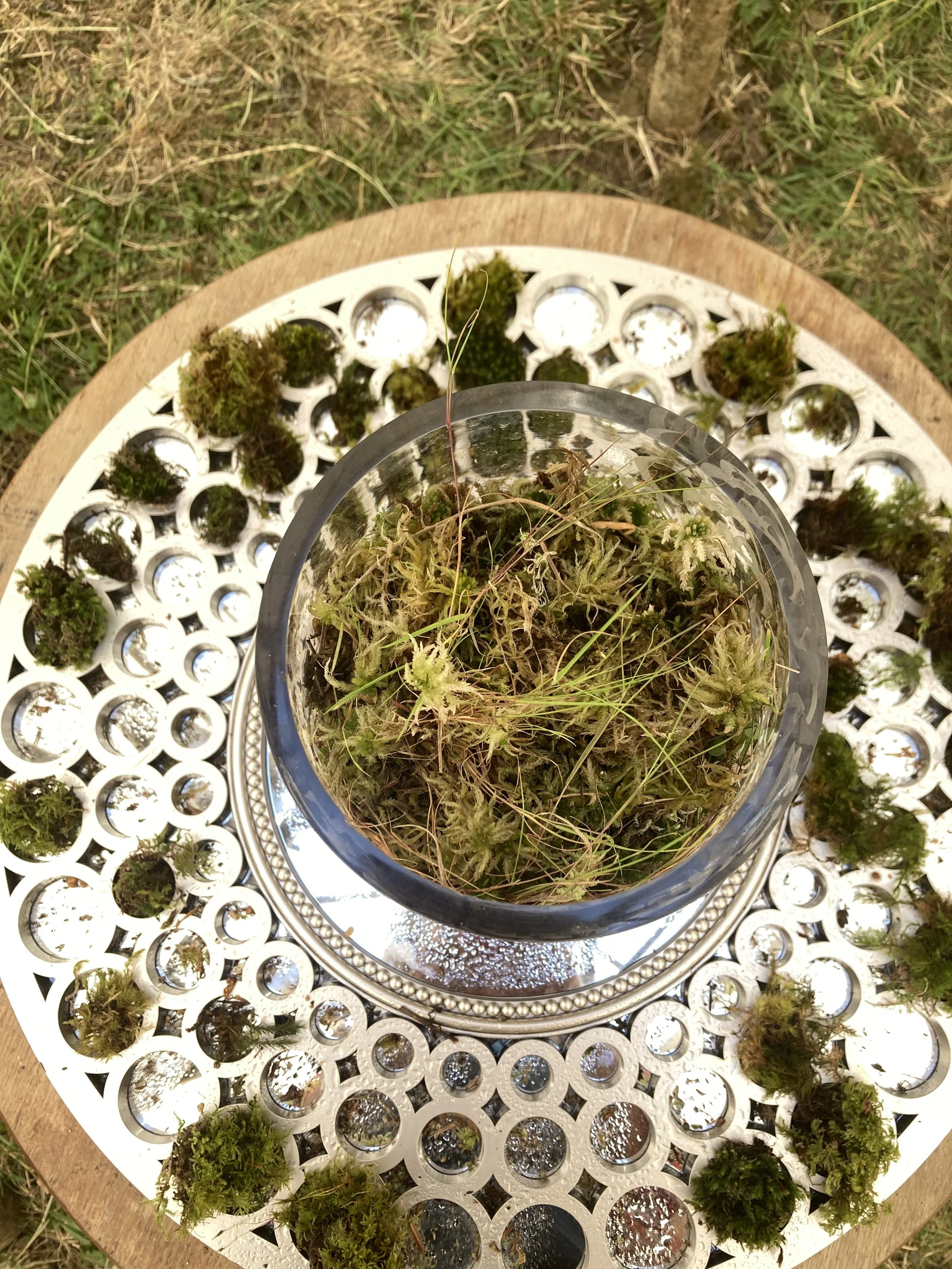 The Mossy Carpet adorned the walls of the roundhouse, inspired by peatlands of Dartmoor, and the positive climate impact of many mosses living together and making the environment better for us all to thrive. Each small moss taking tiny actions, adding up to a massive positive difference to our world.