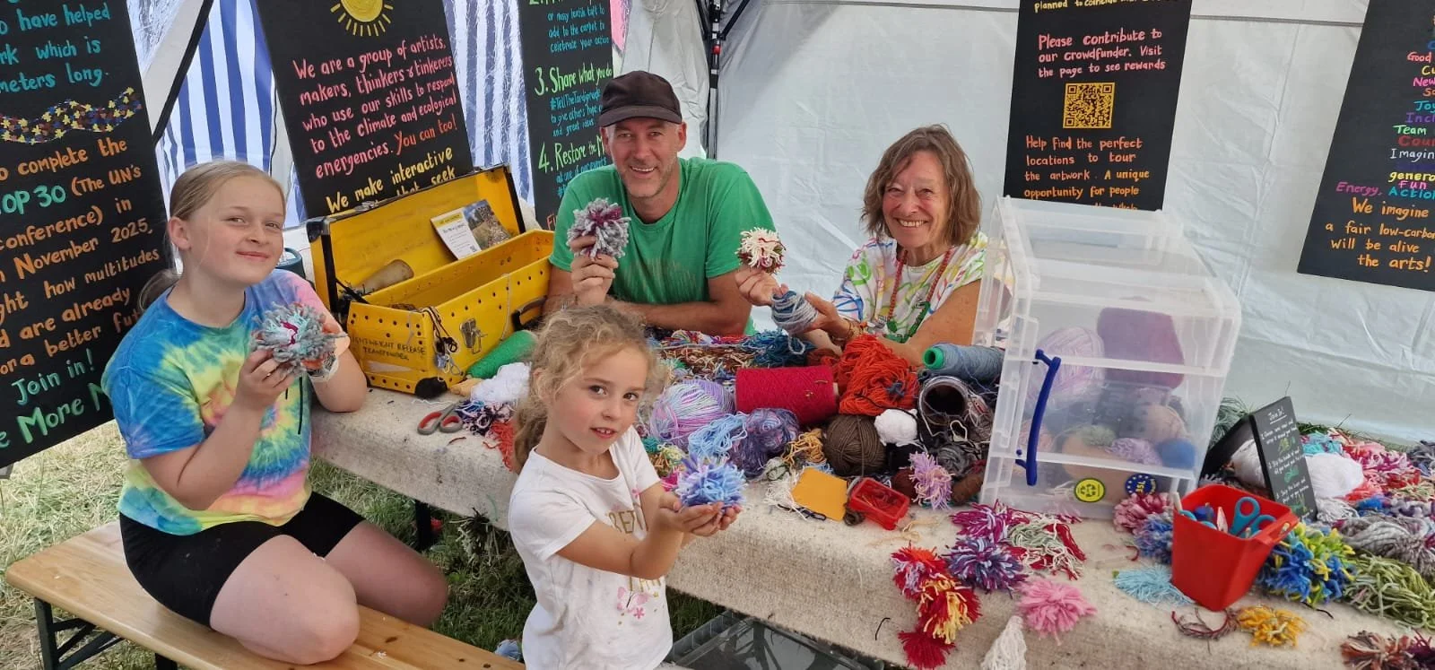 Moss inspired pompom making at Glastonbury 2025 - creativity for all ages!